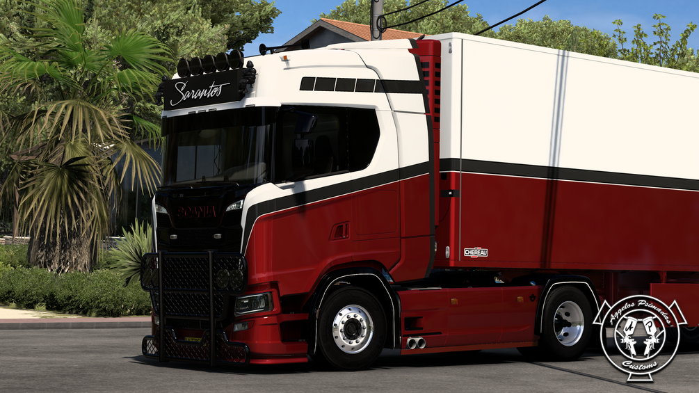 💥Scania S Sarantos Red & White Combo Skin for Scania S SCS & Eugene!